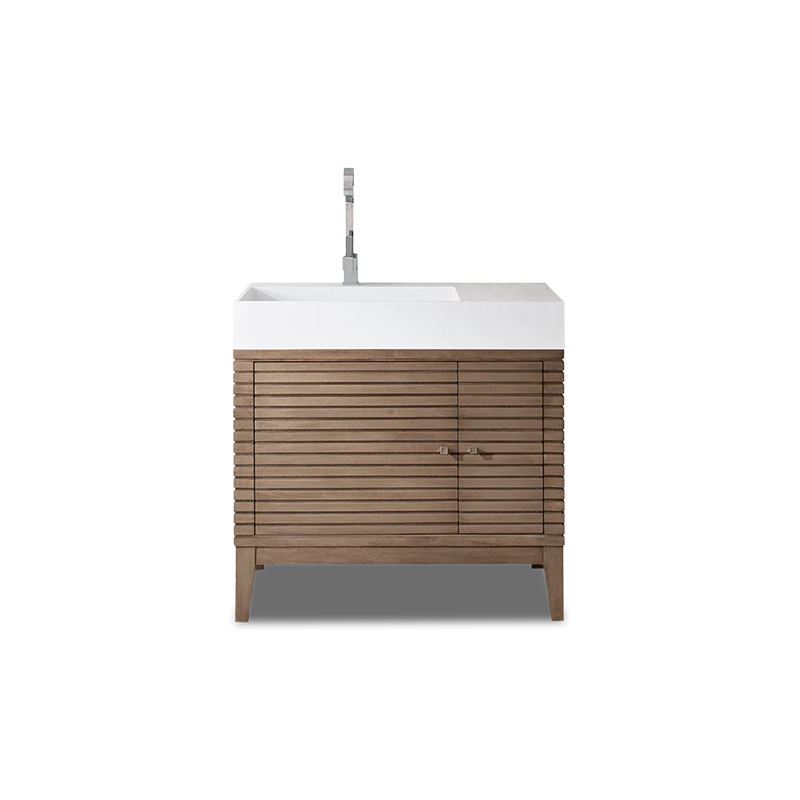 The horizontal grid design combined with thickened marble countertops. Make it both practical and elegant.
