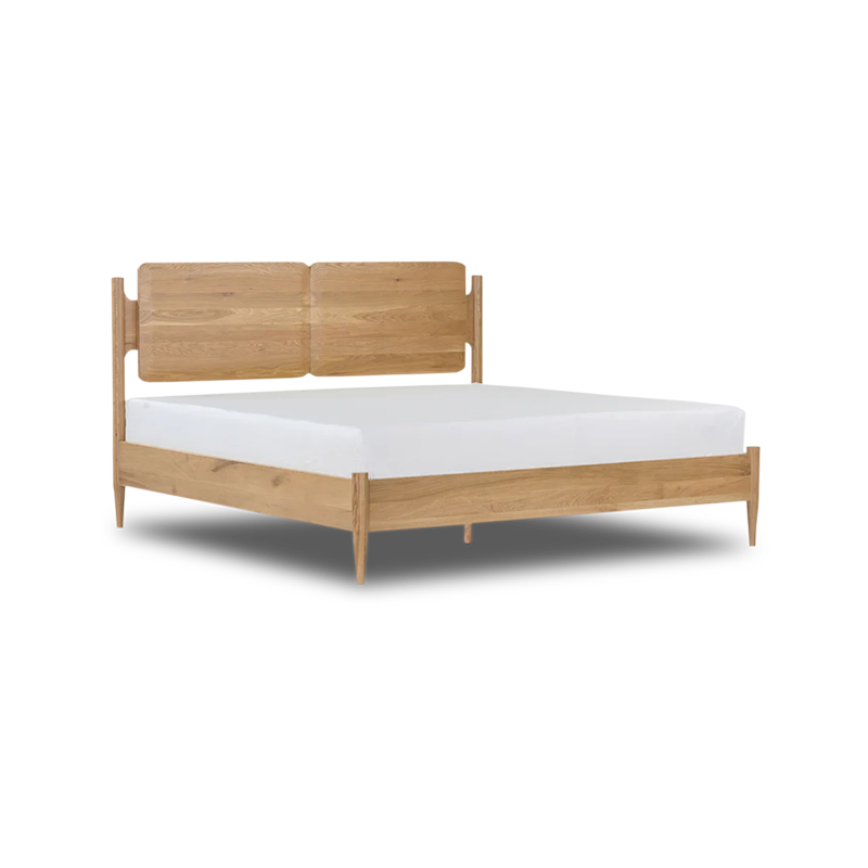 The light-wood headboard and frame of this bed create a warm, elegant look. Its sturdy legs and quality construction make it a reliable and inviting addition to your sleep space.