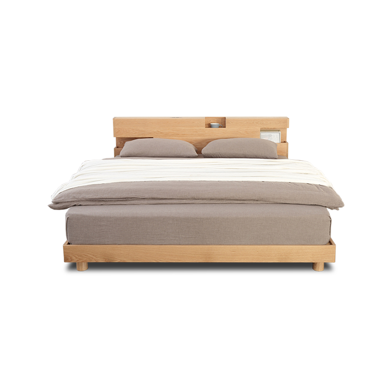 This bed stands out with its headboard storage compartments, blending elegance with practicality. The light-wood finish gives it a warm, inviting feel, and its reliable build ensures long-lasting use.