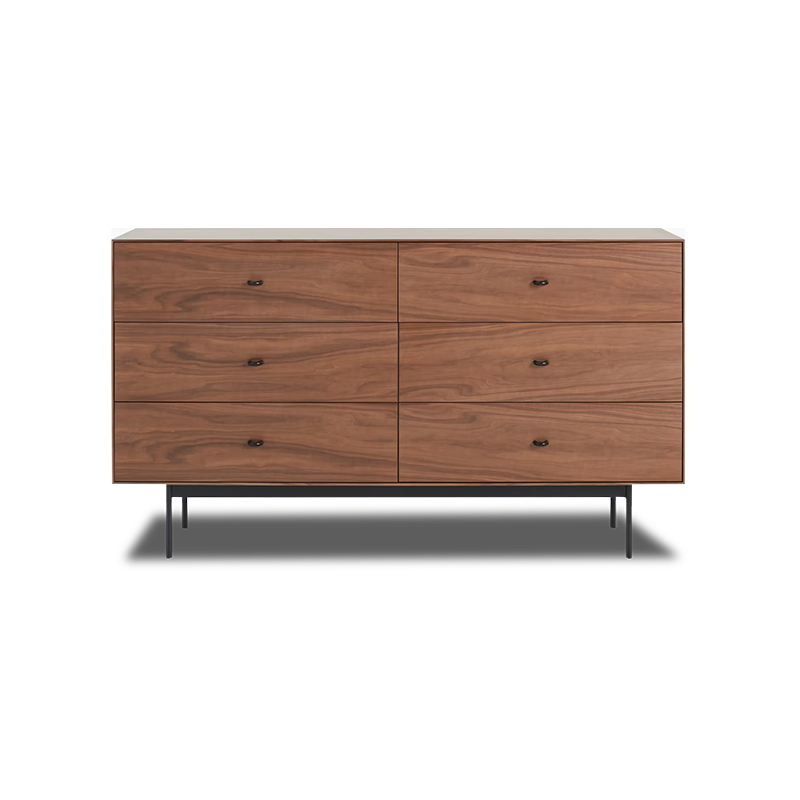 Blending walnut veneer with a black metal base, this piece exudes modern elegance. The refined handles and meticulous craftsmanship make it a stylish, reliable